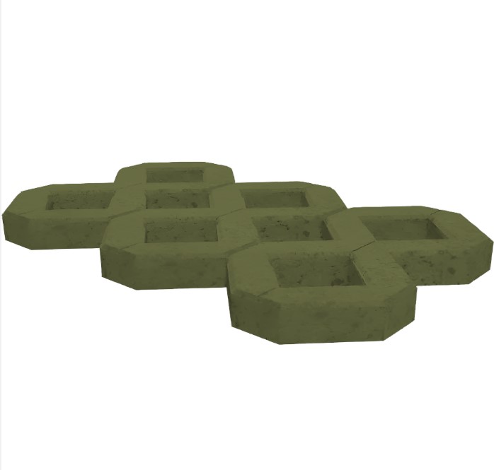 Газонная решетка изготавливается из тяжелого бетона, что придает ей устойчивость к механическим нагрузкам. Благодаря толщине 100 мм она выдерживает вес легковых и грузовых автомобилей, что делает ее идеальным решением для парковок.