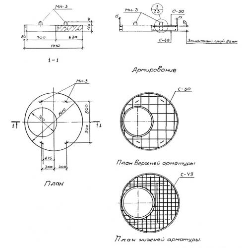 Бетонная крышка колодца ПП 25-1